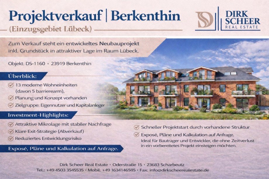 Die geplante Bebauung bietet die Möglichkeit, ein wirtschaftlich tragfähiges Wohnkonzept umzusetzen, das sowohl für Eigennutzer als auch für Kapitalanleger attraktiv ist. Durch die Lage im wachstumsstarken Umfeld der Metropolregion Hamburg sowie die Nähe zur Hansestadt Lübeck besteht eine stabile Nachfrage nach neu geschaffenem Wohnraum.